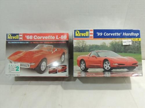 LOT 2 REVELL PLASTIC MODEL KIT 1999 CORVETTE HARDTOP & 1968 CORVETTE L-88 STINGRAY. 1/25 SCALE. NEW IN BOX UNOPENED. AS SHOWN. VIEW PICTURE FOR DETAIL.