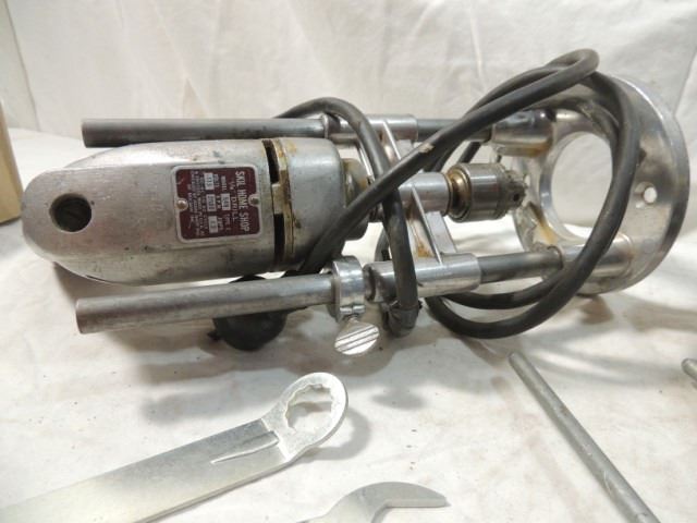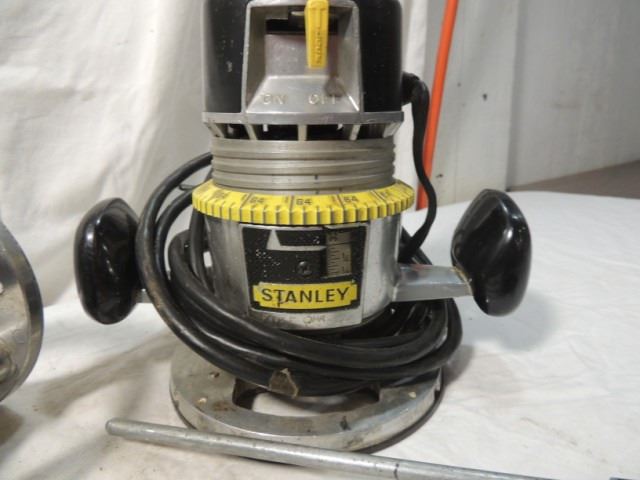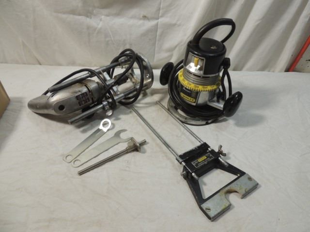 STANLEY PLUNGE ROUTER WITH TABLE, ETC. NICE UNIT, AND WORKS GREAT, AND INCLUDED SMALL DRILL UNIT WITH CONVERSION PLATE TO MAKE IT A ROUTER. BOTH FOR ONE MONEY, AS SHOWN.