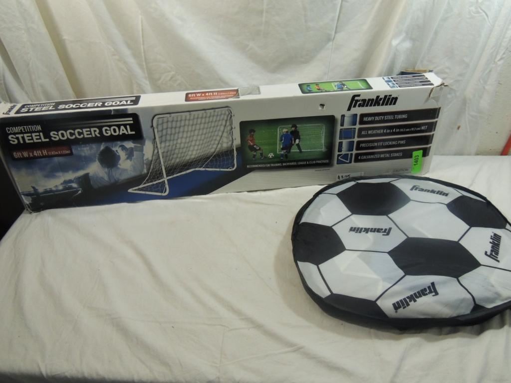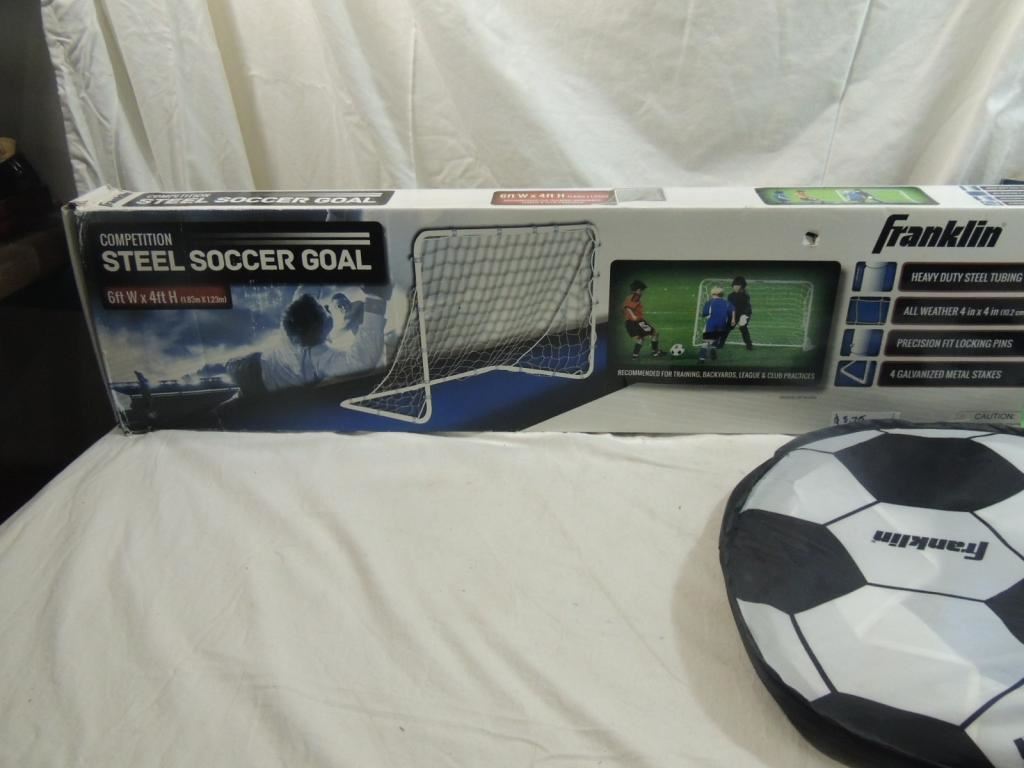 STEEL COMPETITION SOCCER GOAL, FRANKLIN POP UP PORTABLE GOAL, TRAINING, BACKYARS, CLUB PACTICES, AS SHOWN SEE PHOTO FOR MORE DETAILS.