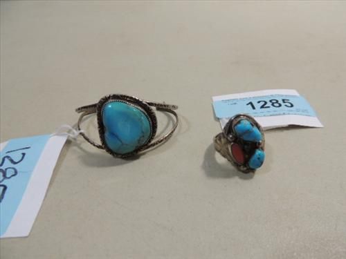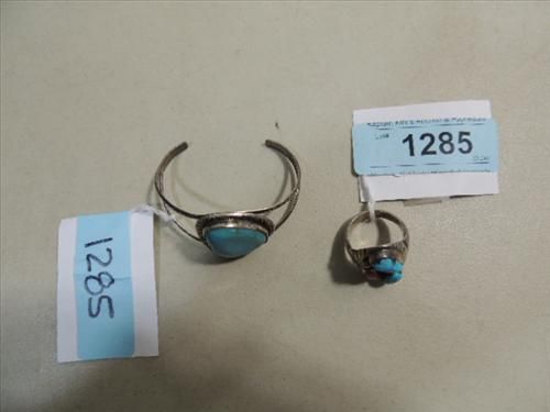 LOT 2 STERLING SILVER & TURQUOISE RING & BRACELET. AS SHOWN. VIEW PICTURE FOR DETAIL.