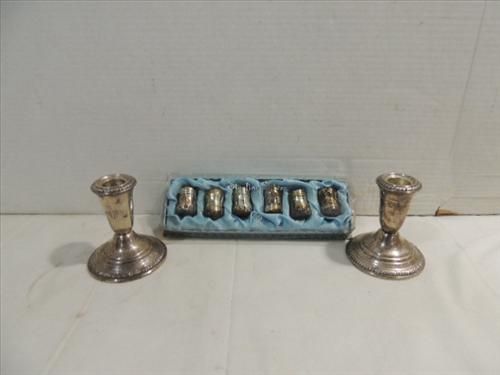 LOT 2 STERMING SILVER: PAIR OF CANDLE HOLDERS, SIX