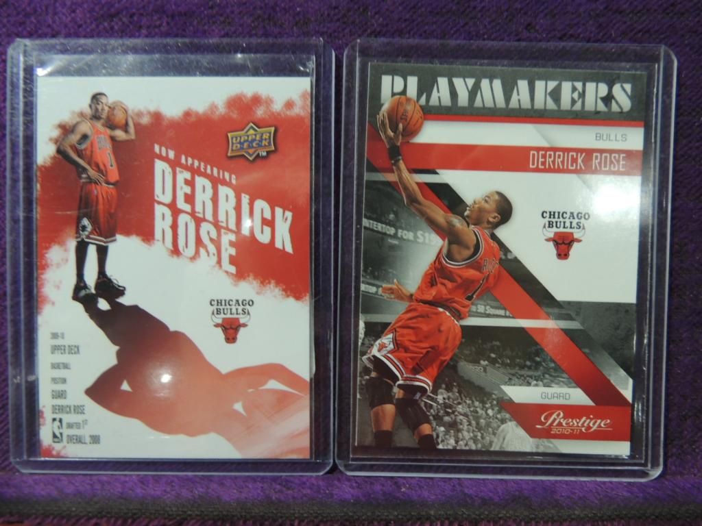 LOT 2 2009 UPPER DECK DERRICK ROSE BASKETBALL CARD. 2010 PANINI DERRICK ROSE BASKETBALL CARD. SEE PICTURE FOR DETAILS. AS SHOWN.