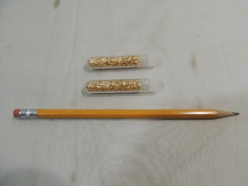 LOT 2 VIALS OF GOLD FLAKE. AS SHOWN. VIEW PICTURE FOR DETAIL.