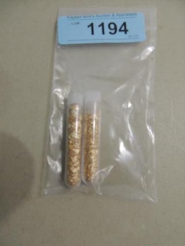 LOT 2 VIALS OF GOLD FLAKE. AS SHOWN. VIEW PICTURE FOR DETAIL.
