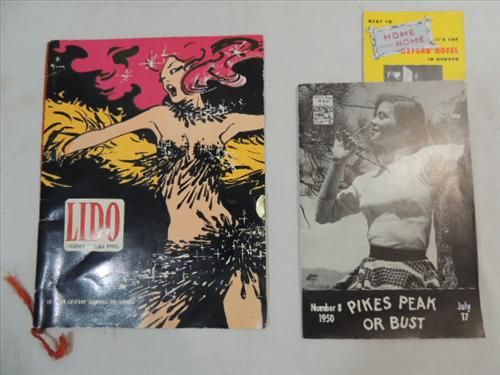 LOT 2 VINTAGE 1950S TRAVEL BROCHURES: LIDO REVIEW OF PARIS FRANCE & 1950 PIKES PEAK OR BUST. AS SHOWN. VIEW PICTURE FOR DETAIL.