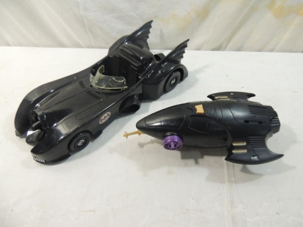 VINTAGE BATMAN BATMOBILE BATMAN CAR, BATMAN PLANE, ROCKET, AS SHOWN SEE PHOTO FOR MORE DETAILS.