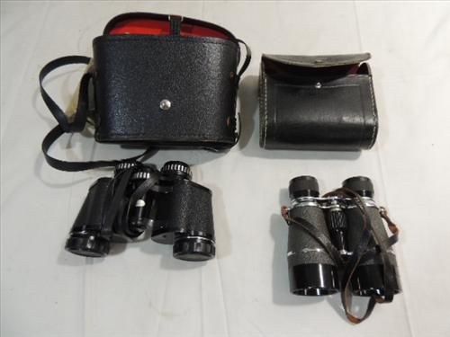 LOT 2 VINTAGE BINOCULARS IN LEATHER CASES: STELLAR 4X40 & SANS - STREIFFE 8X30. AS SHOWN. VIEW PICTURE FOR DETAIL.