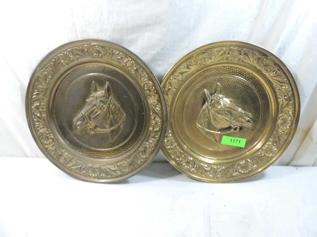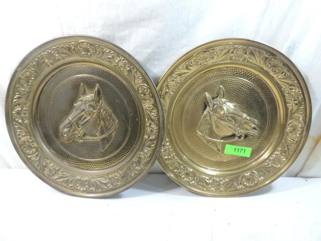 BRASS HAMMERED HORSE HEAD WALL HANGING PLAQUE VINTAGE DECORATIVE PLATE AS SHOWN SEE PHOTO FOR MORE DETAILS.