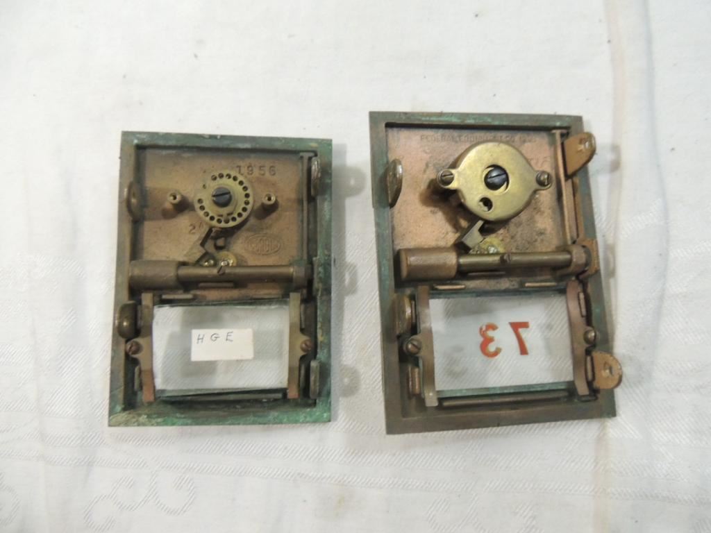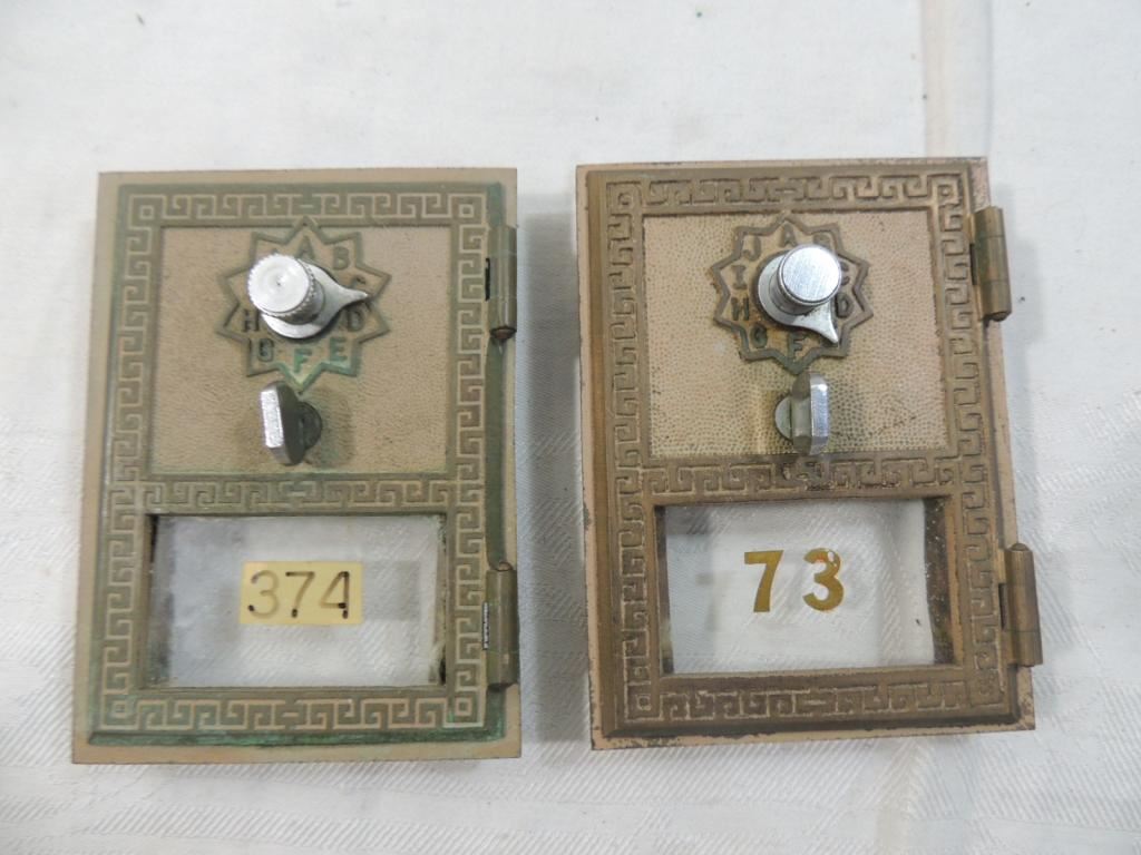 VINTAGE BRASS 1950's POST OFFICE MAILBOX DOOR VINTAGE BRASS POST OFFICE BOX / MAILBOX DOOR AND FRAME FROM 1960s KEYLESS LOCK AS SHOWN SEE PHOTO FOR MORE DETAILS.