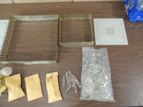 LOT 2 VINTAGE CEILING LIGHTS: 112 GLASS PRISMS, BRASS FRAMES AND HARDWARE. AS SHOWN. VIEW PICTURE FOR DETAIL.