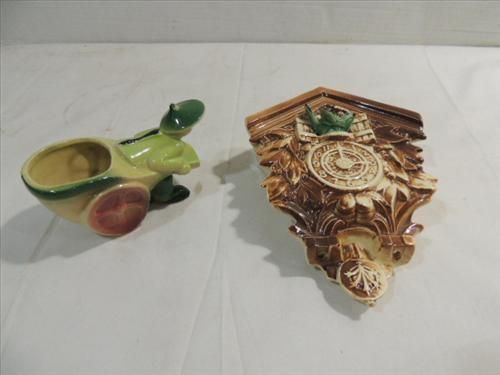 LOT 2 VINTAGE CERAMIC ITEMS: MCCOY WALL POCKET, &