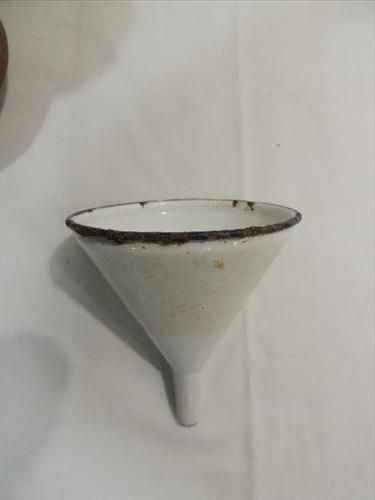 LOT 2 VINTAGE COLLECTIBLES: 1 ENAMAL FUNNEL, 1
