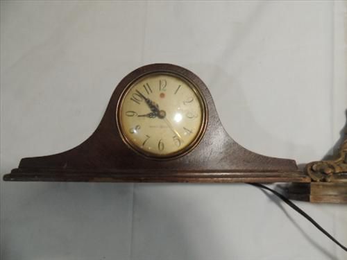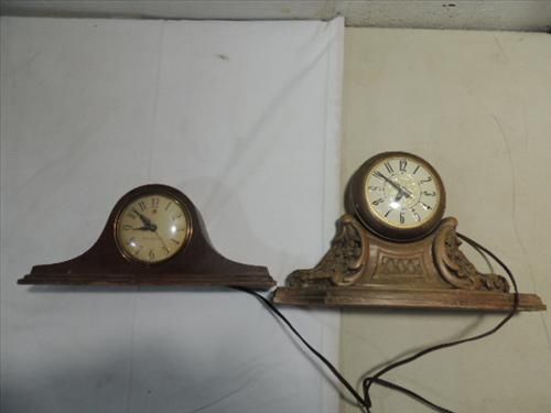 LOT 2 VINTAGE ELECTRIC MANTLE CLOCKS (GE & LANSHIRE). AS SHOWN. VIEW PICTURE FOR DETAIL.