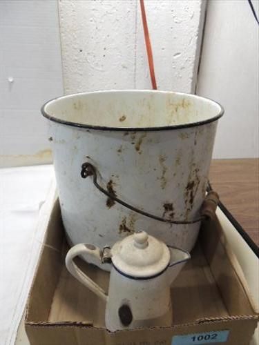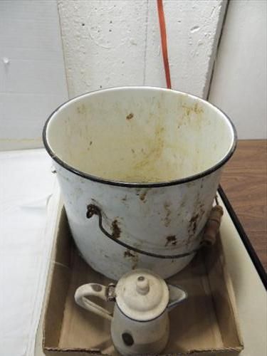 LOT 2 VINTAGE ENAMAL WARE: 12"D LARGE KETTLE, 1