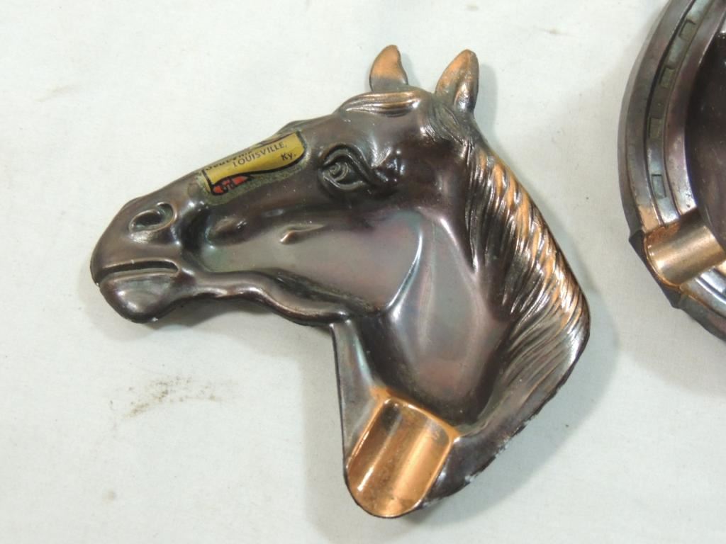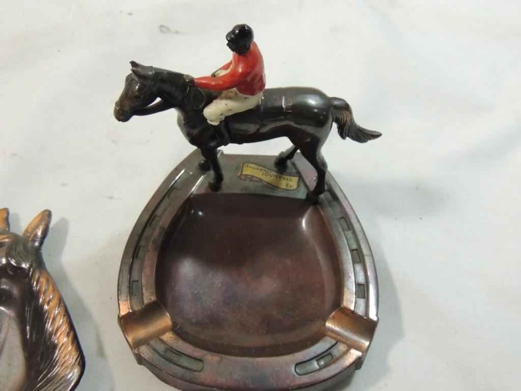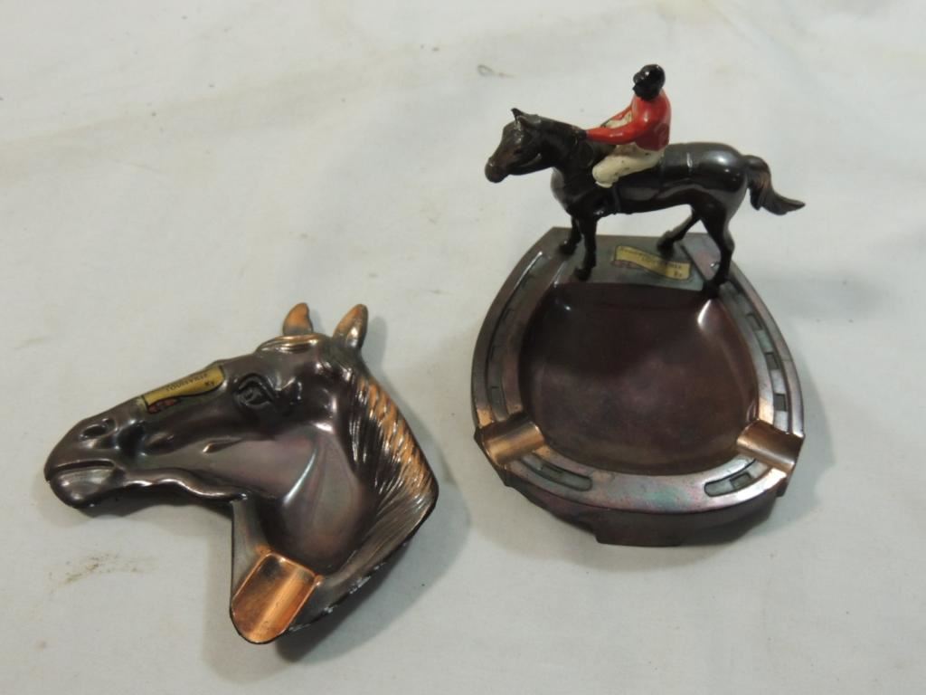 VINTAGE EQUESTRIAN ASH TRAY HORSE HEAD RIDER HORSE SHOE METAL AS SHOWN SEE PHOTO FOR MORE DETAILS.