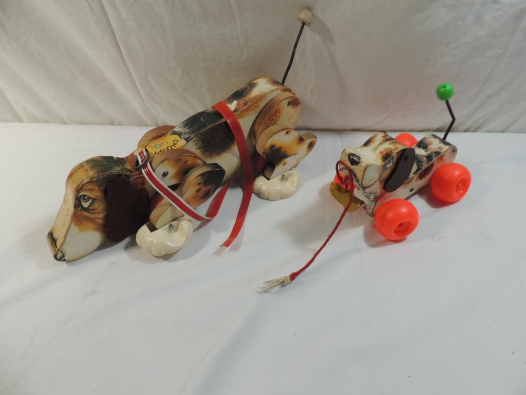 LITTLE SNOOPY & SNOOPY PULL DOG TOY. VINTAGE TOY. GOOD CONDITION. COLLECTIBLE. FULL SIZE AND SMALL TOY. AS SHOWN SEE PHOTO FOR MORE DETAILS.