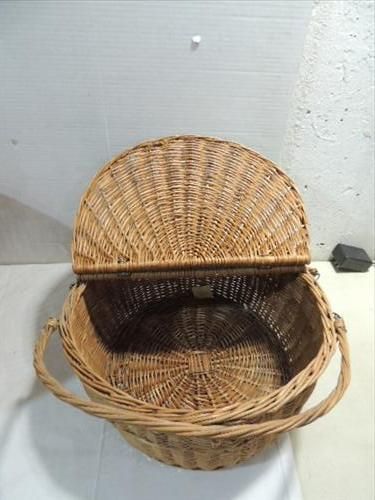 LOT 2 VINTAGE HIGH QUALITY OLD REED WOVEN BASKETS. 16"D. AS SHOWN. VIEW PICTURE FOR DETAIL.