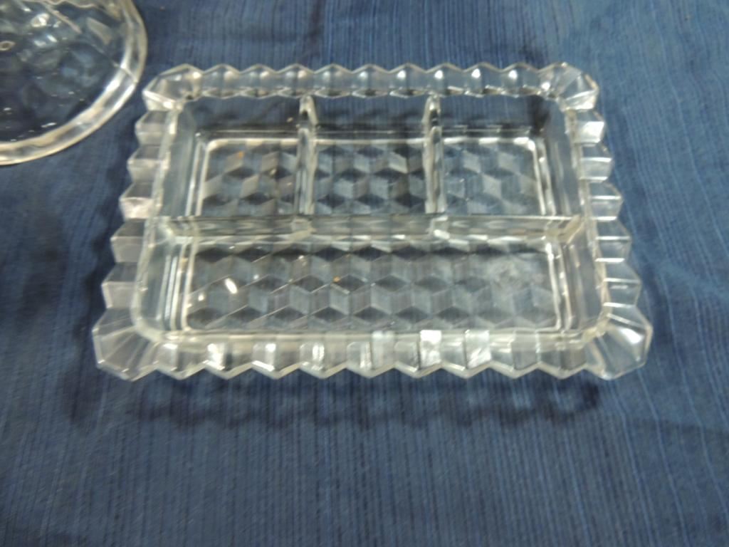 LUNCH DISH RELISH TRAY VINTAGE JEANNETTE CUBIEST STAND AS SHOWN SEE PHOTO FOR MORE DETAILS.