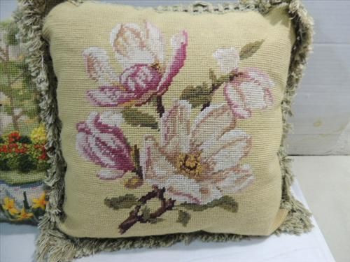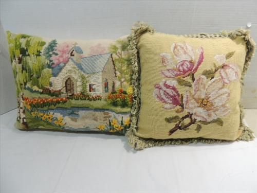 LOT 2 VINTAGE NEEDLE POINT PILLOWS; FLORAL PATTERN.AS SHOWN. VIEW PICTURE FOR DETAIL.