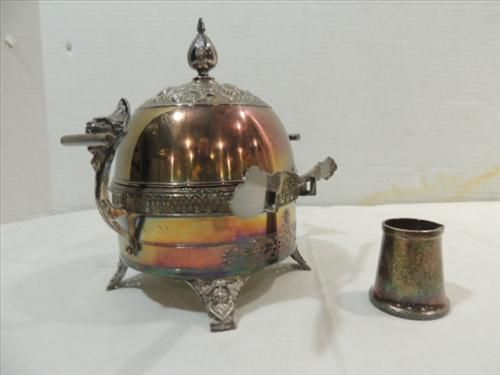 LOT 2 VINTAGE SILVER PLATED COVERED BUTTER KEEP & SMALL CREAMER. AS SHOWN. VIEW PICTURE FOR DETAIL.
