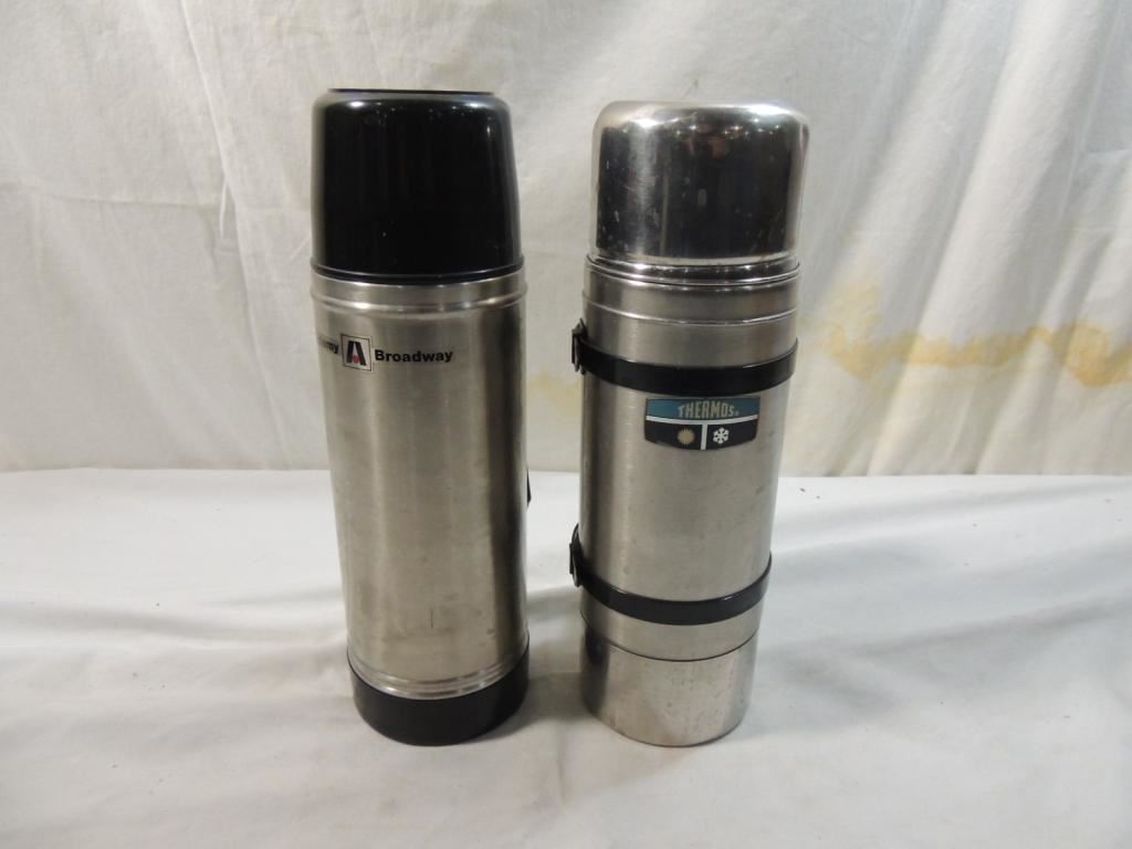 LARGE THERMOS, COFFEE, HOT COCO, SOUP, LARGE, TRAVEL, HANDLE, METAL, THERMOS AS SHOWN SEE PHOTO FOR MORE DETAILS.