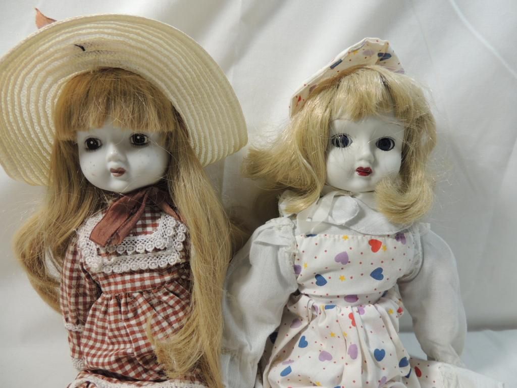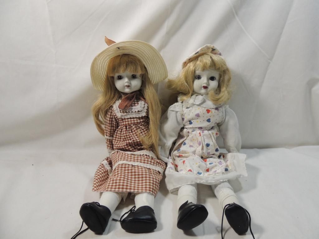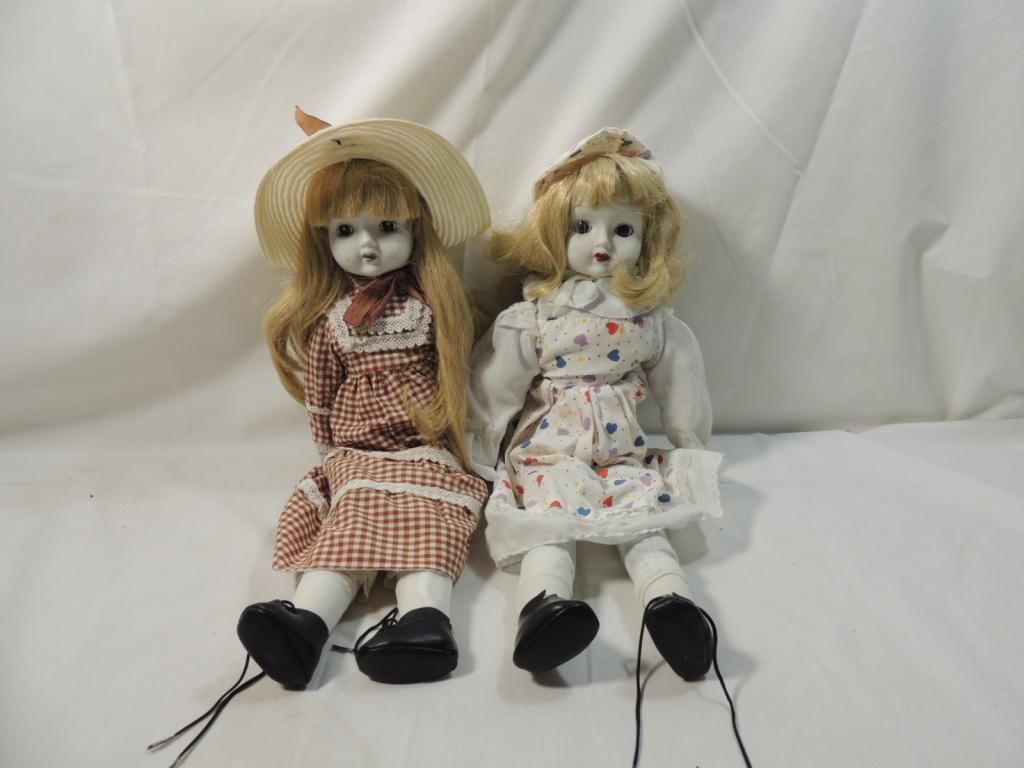 17" WHITE PORCELAIN DOLLS AS SHOWN. SEE PHOTO FOR MORE DETAILS.