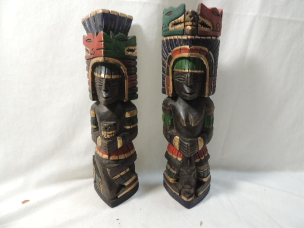 AFRICAN LOOK TIKI TOTEMS. 11.5" EACH. CARVED WOOD. SEE PICTURES FOR MORE.