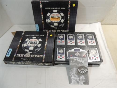 LOT 2 WORLD SERIES POKER TEXAS HOLD'EM DIGITAL INTERACTIVE GAME SYSTEM. 4 PLAYER STATION PLUGS INTO THE TELEVISION. NEW NEVER USED. AS SHOWN. VIEW PICTURE FOR DETAIL.