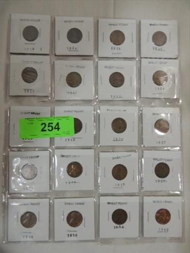 LOT 20 1919 TO 56 CIRCULATED WHEAT PENNIES. AS SHOWN. VIEW PICTURE FOR DETAIL.