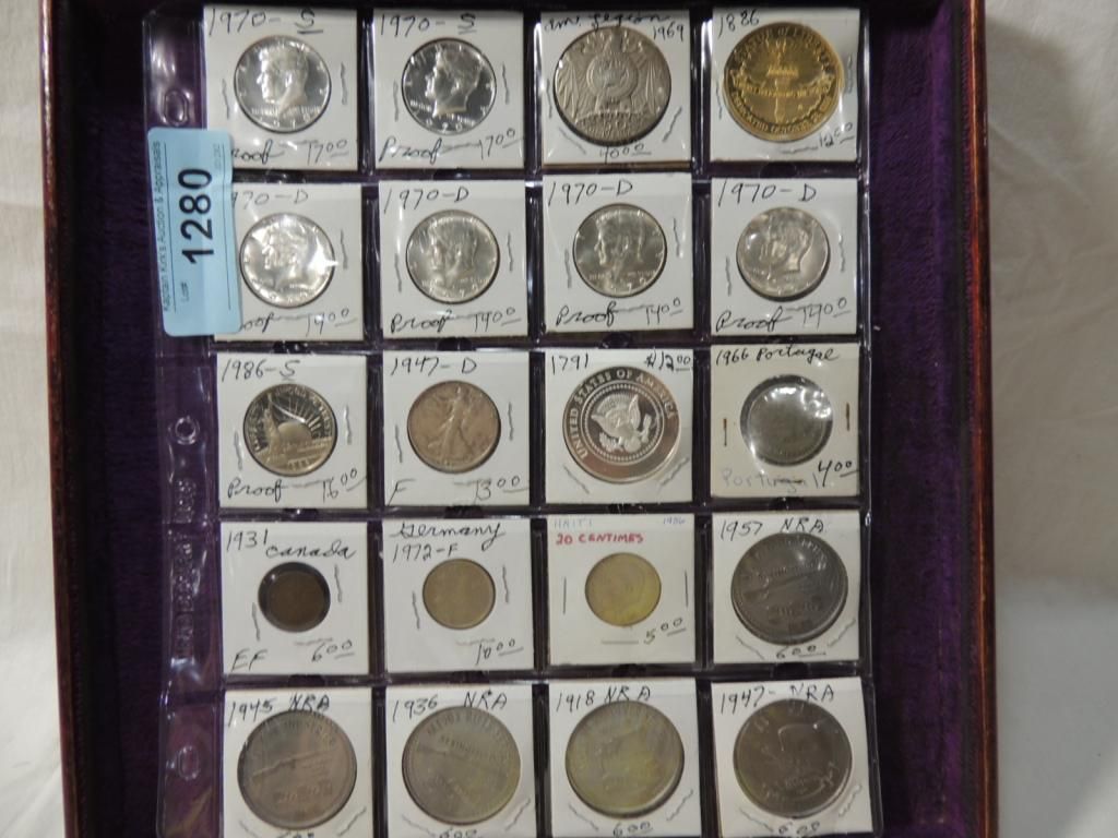 PROOF FORGEIN COINS, HAITI, GERMANY, CANADA, NRA COMMEMORATIVE COINS, MIXED COINS. PROOF COIN. COIN COLLECTIBLES GOOD CONDITION. DISPLAY SET. SOME UNCIRCULATED. US CURRENCY. AS SHOWN. SEE PHOTO FOR MORE DETAILS.