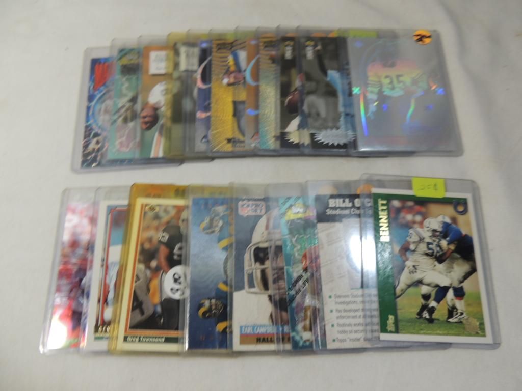 MIXED MAKERS AND MIXED DATES. FOOTBALL PLAYER CARDS. TRADING CARDS. FOOTBALL COLLECTIBLE. GOOD CONDITION. PROTECTIVE SLEEVES. SPORTS FOOTBALL MEMORABILIA. AS SHOWN SEE PHOTO FOR MORE DETAILS.