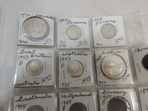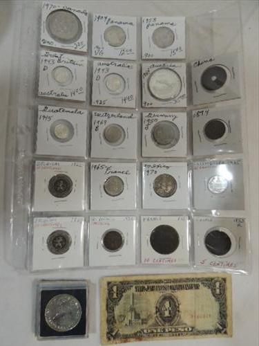 LOT 20 FOREIGN COINS (6) SILVER COINS & 1 JAPANESE WWII OCCUPATIONAL 1 PESO FOR THE PHILLIPPINES. AS SHOWN. VIEW PICTURE FOR DETAIL.