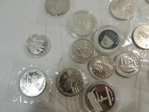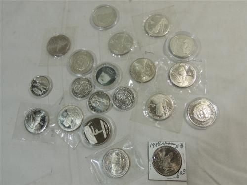 LOT 20 MIX GROUP OF CONTEMPORARY FOREIGN MEDALLIANS: SPACE, WWII, PRESIDENTS AND MORE. AS SHOWN. VIEW PICTURE FOR DETAIL.