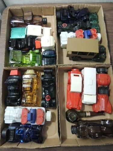 LOT 20 VINTAGE AVON MENS AFTER SHAVE GLASS DECANTERS: 19 CLASSIC OLD CARS & 1 GLASS SMOKING PIPE. AS SHOWN. VIEW PICTURE FOR DETAIL.
