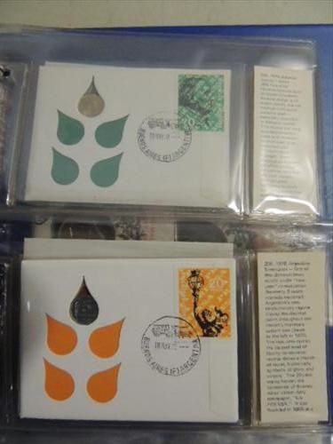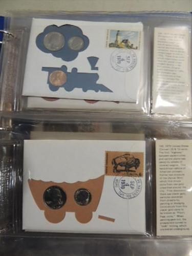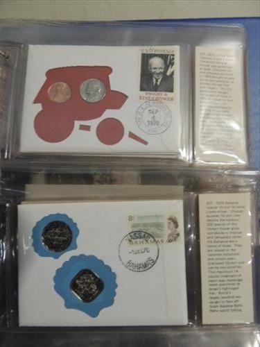 LOT 21 FOREIGN COIN & POSTAGE ON COVER COLLECTION IN RING BINDER. INCLUDES A SHORT HISTORY OF EACH COIN & COUNTRY. AS SHOWN. VIEW PICTURE FOR DETAIL.
