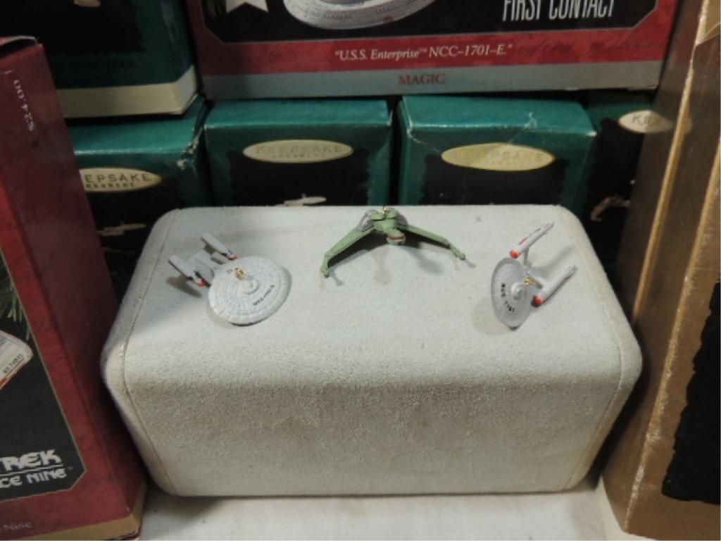 ASSORTED STAR TREK HALLMARK KEEPSAKE ORNAMENTS. AS SHOWN. SEE PHOTO FOR MORE DETAILS.