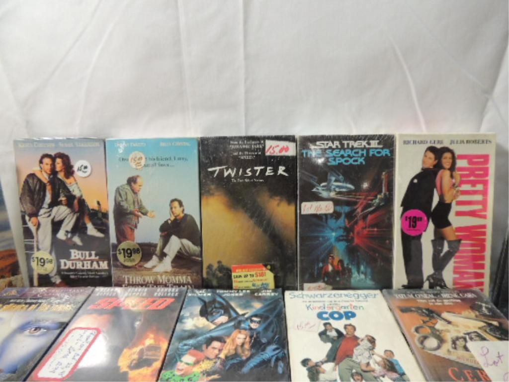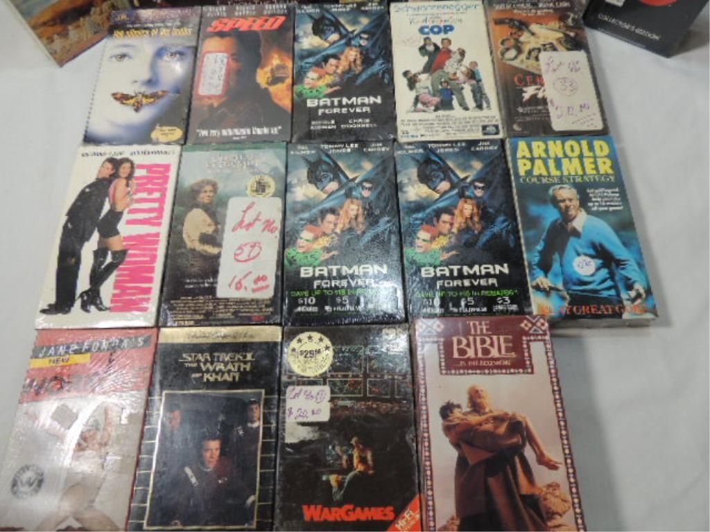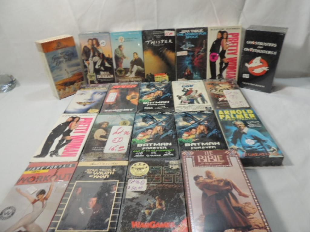 PRETTY WOMAN, STAR TREK 3, TWISTER, THROW MOMMA FROM THE TRAIN, BULL DURHAM, GHOSTBUSTERS 1 & 2, THE SILENCE OF THE LAMBS, SPEED, BATMAN FOREVER, CERTAIN FURY, KINDERGARDEN COP, GORILLAS IN THE MIST, THE BIBLE, THE GREATEST STORY EVER TOLD, WARGAMES, STAR TREK 2, JANE FONDA WORKOUT, ARNOLD PALMER GOLF. AS SHOWN. SEE PHOTO FOR MORE DETAILS.