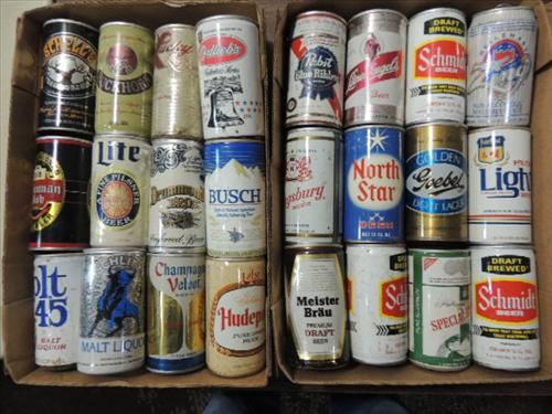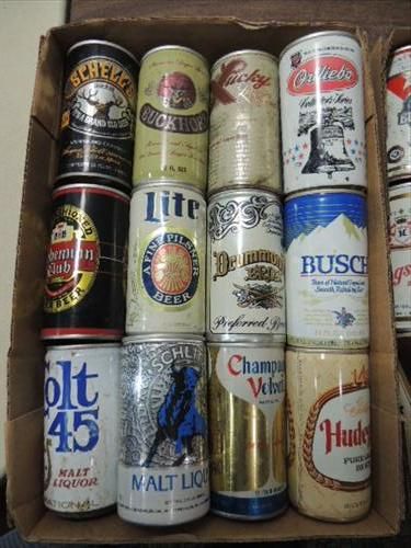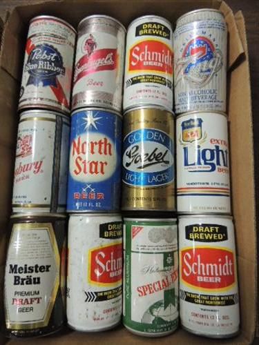 LOT 24 BREWERIANA VINTAGE ASSORTED PULL TOP BEER CANS: BUCKHORN, LUCKY, NORTH STAR, SCHMIDT AND MANY MORE. AS SHOWN. VIEW PICTURE FOR DETAIL.
