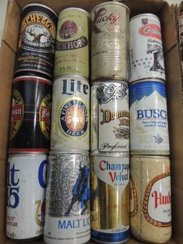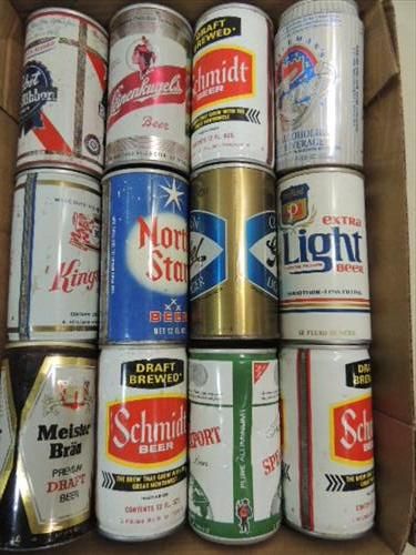 LOT 25 BREWERIANA VINTAGE PULL TOP BEER CANS: WALTER'S, ALPS BRAU, HAMMS, PBR, KINGSBURG AND MANY MORE. AS SHOWN. VIEW PICTURE FOR DETAIL.