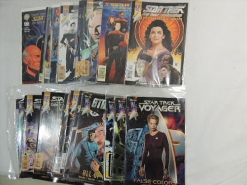 LOT 25 MARVEL & WORDSTORM COMIC BOOKS: ASSORTED STAR TREK SERIES, VOYAGER, DEEP SPACE NINE, GENERATIONS AND MORE. AS SHOWN. VIEW PICTURE FOR DETAIL.