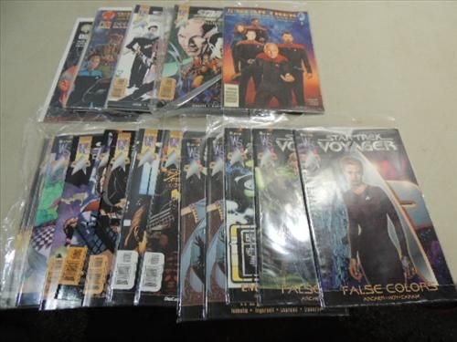 LOT 25 MARVEL & WORDSTORM COMIC BOOKS: ASSORTED STAR TREK SERIES, VOYAGER, DEEP SPACE NINE, GENERATIONS AND MORE. AS SHOWN. VIEW PICTURE FOR DETAIL.