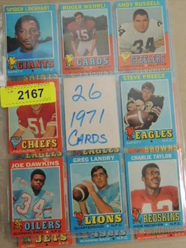 LOT 26 1971 TOPPS FOOTBALL PLAYER CARDS. AS SHOWN. VIEW PICTURE FOR DETAIL.