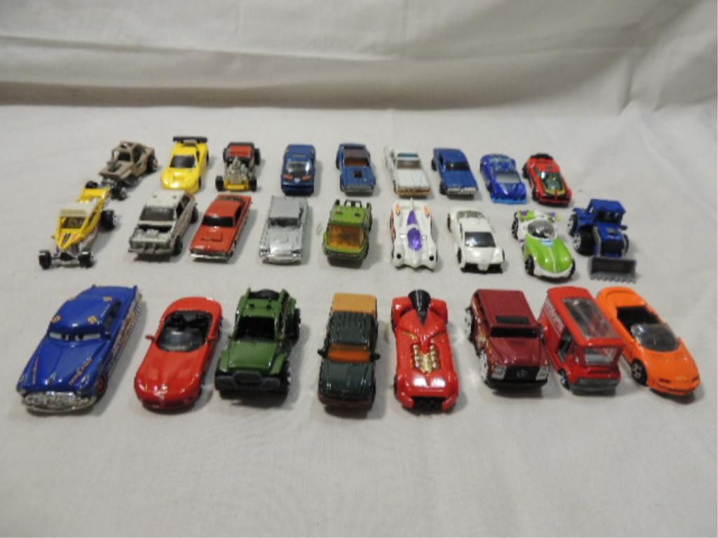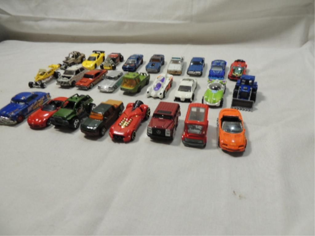 LOT BOX 26 DIE CAST METAL TOY CARS. ERTL, HOT WHEELS, AND MORE AS SHOWN. SEE PHOTO FOR DETAILS.