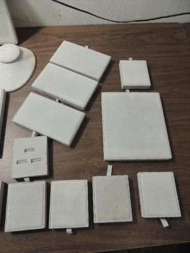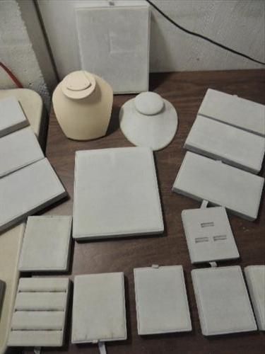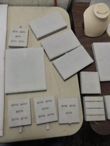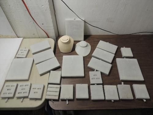 LOT 26 JEWELRY STORE DISPLAY ORGANIZERS: 14 3X4 RING DISPLAYS, 6 7X4 JEWELRY DISPLAYS, 4 8X7 JEWLRY DISPLAYS & 2 NECLACE DISPLAYS. AS SHOWN. VIEW PICTURE FOR DETAIL.