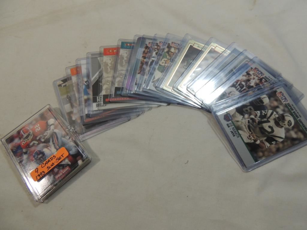 DONOVAN MCNABB, JOE MONTANTA, DAN MARINO, JOHN ELWAY, BRIAN URLACHER FOOTBALL PLAYER CARDS. FOOTBALL TRADING CARDS. COLLECTIBLE. PROTECTIVE PLASTIC. SPORTS MEMORABILIA.. GOOD CONDITION. AS SHOWN SEE PHOTO FOR MORE DETAILS.