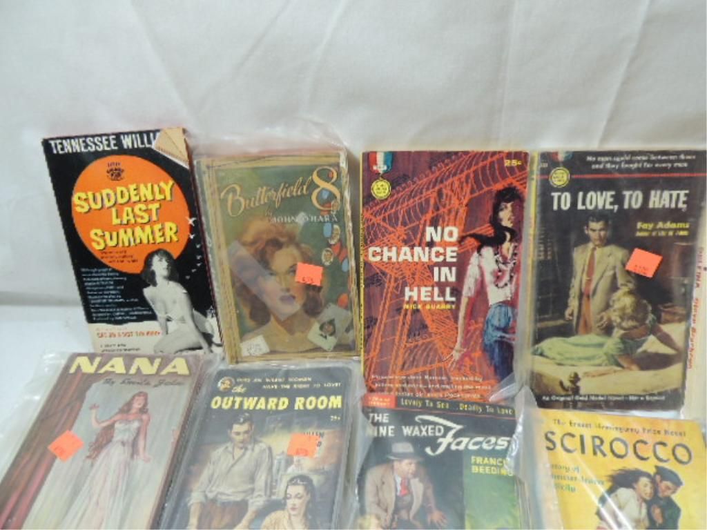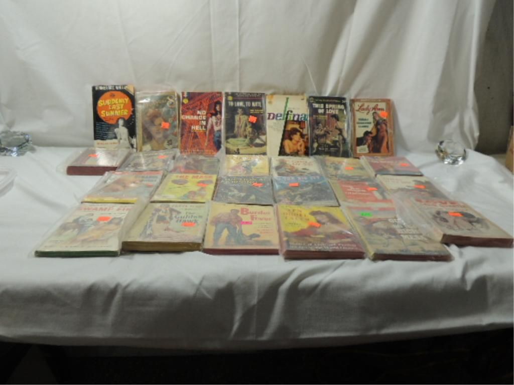 PAPERBACK ROMANCE NOVELS. POCKET BOOK NOVELS. SOME TITILES INCLUDE. THE LION AT MORNING, THE BIG IVY, SCIROCCO, STRANGE FRUIT, THE SPRING OF LOVE THE GIRLS IN 3B. AND MORE. AS SHOWN. SEE PHOTO FOR MORE DETAILS. AVON GENUINE POCKET BOOK. SIGNET.