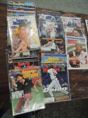 LOT 27 1990 TO 1999 SPORTS ILLUSTRATED MAGAZINES: CRAIG NORMAN, STEVE YOUNG, O.J. AND MORE. AS SHOWN. VIEW PICTURE FOR DETAIL.