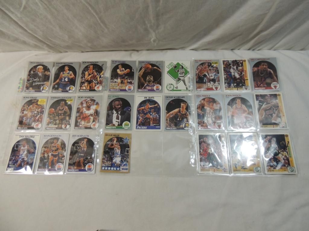 MIXED DATES AND MIXED MAKERS. ASSORTED BASKETBALL PLAYER TRADING CARDS. GOOD CONDITION. IN BINDER SHEET COLLECTIBLE. BASKETBALL MEMORABILIA. AS SHOWN SEE PHOTO FOR MORE DETAILS.