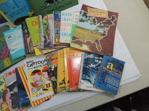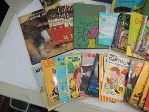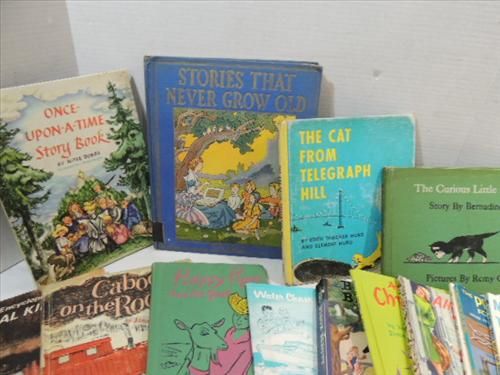 LOT 29 VINTAGE CHILDRENS STORY BOOKS: BLACK BEAUTY, PROJECT BOOK, LITTLE RED HEN, CAT FROM TELEGRAPH HILL AND MUCH MORE. AS SHOWN. VIEW PICTURE FOR DETAIL.