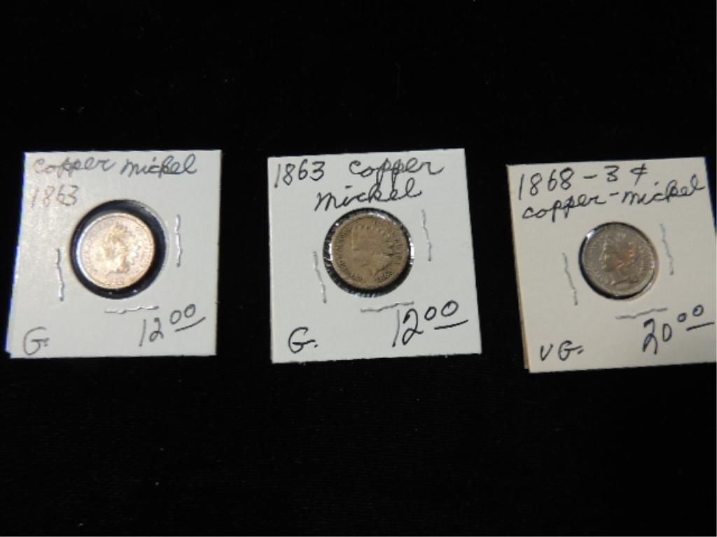 LOT 3 1863 COPPER NICKELS AS SHOWN SEE PHOTO FOR MORE DETAILS.